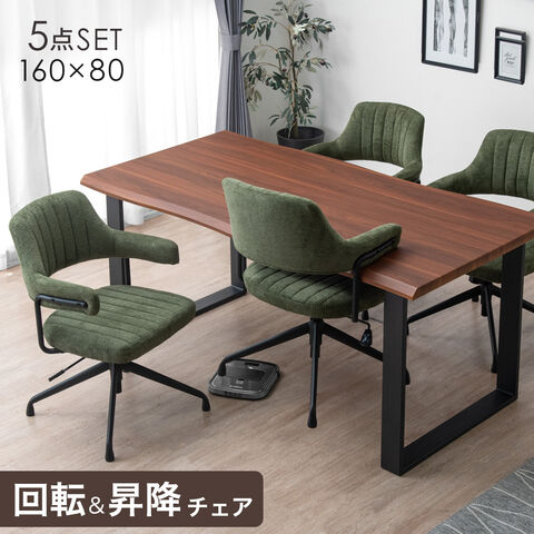 お掃除ロボット対応 ダイニングセット 回転 昇降 チェア 4人掛け 長方形 テーブル ハンギングチェア 北欧 おしゃれ 【超大型】99900039〔テーブル:ブラウン/チェア:モスグリーン(ファブリック)〕【予約】5月上旬※5/10までに出荷予定