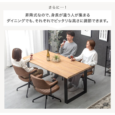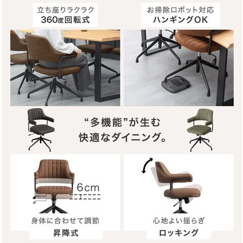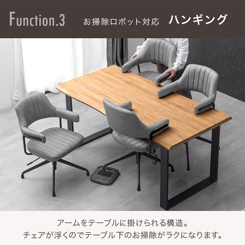 テーブル ・天然木のような質感を表現したなぐり加工天板 ・天然木の質感を再現したエンボス加工 ・スタイリッシュなブラック脚 チェア ・身体にフィットする丸みを帯びたデザイン ・ハンギングOK お掃除ロボ対応 ・肘付き&回転式で立ち座りラクラク! ・身長やテーブルの高さに合わせて使える6cm昇降 ・張地は選べる2タイプ 【レザータイプ】 ・しっとり滑らかソフトレザー ・使い込まれたような風合い エイジング加工 【ファブリックタイプ】 ・年中さらっと快適 ・お手入れ簡単な撥水加工 |