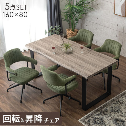 お掃除ロボット対応 ダイニングセット 回転 昇降 チェア 4人掛け 長方形 テーブル ハンギングチェア 北欧 おしゃれ 【超大型】99900039〔テーブル:グレー/チェア:モスグリーン(ファブリック)〕【予約】5月上旬※5/10までに出荷予定