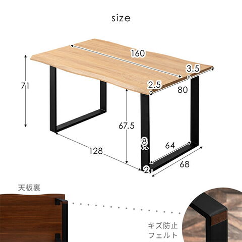 | サイズ | 【テーブル】 外寸:幅160×奥行80×高さ71cm 【チェア】 外寸:幅53×奥行47×高さ76~82cm 座面高:41~47cm |