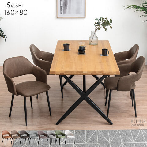 天然木 ダイニングテーブルセット 4人掛け 5点セット アッシュ ダイニングセット 木製 北欧 【超大型】99900102〔テーブル:ブラック/チェア:オールドブラウン(レザー)〕