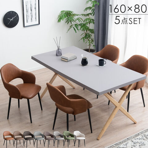 モルタル調 ダイニングテーブルセット 4人掛け 5点セット 長方形 テーブル クロス脚 ダイニングチェア 北欧 モダン【超大型】99900110〔テーブル:ナチュラル/チェア:レトロキャメル(レザー)〕【予約】1月中旬※1/20までに出荷予定