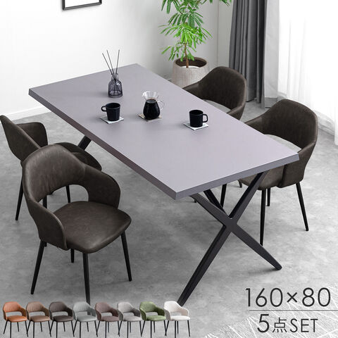 モルタル調 ダイニングテーブルセット 4人掛け 5点セット 長方形 テーブル クロス脚 ダイニングチェア 北欧 モダン【超大型】99900110〔テーブル:ナチュラル/チェア:ブラウニーブラック(レザー)〕