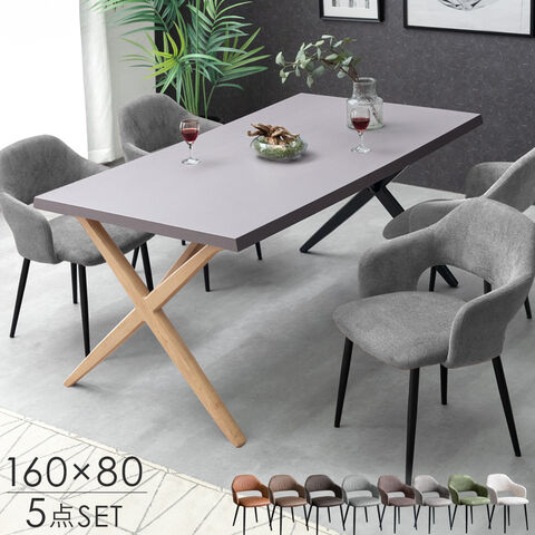 モルタル調 ダイニングテーブルセット 4人掛け 5点セット 長方形 テーブル クロス脚 ダイニングチェア 北欧 モダン【超大型】99900110〔テーブル:ナチュラル/チェア:レドグレー(ファブリック)〕