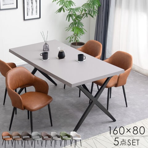 モルタル調 ダイニングテーブルセット 4人掛け 5点セット 長方形 テーブル クロス脚 ダイニングチェア 北欧 モダン【超大型】99900110〔テーブル:ブラック/チェア:レトロキャメル(レザー)〕【予約】1月中旬※1/20までに出荷予定