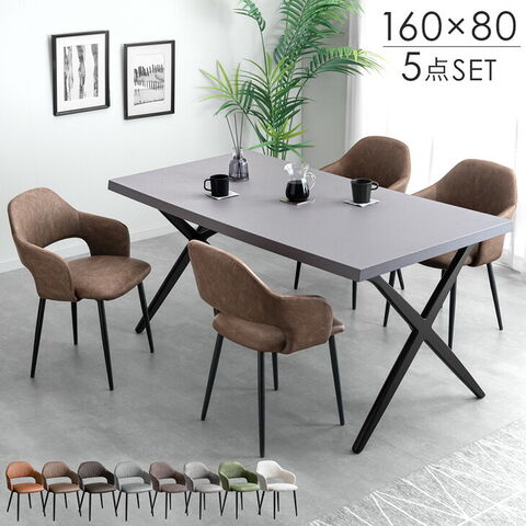 モルタル調 ダイニングテーブルセット 4人掛け 5点セット 長方形 テーブル クロス脚 ダイニングチェア 北欧 モダン【超大型】99900110〔テーブル:ブラック/チェア:オールドブラウン(レザー)〕