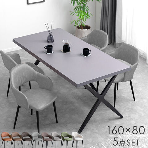 モルタル調 ダイニングテーブルセット 4人掛け 5点セット 長方形 テーブル クロス脚 ダイニングチェア 北欧 モダン【超大型】99900110〔テーブル:ブラック/チェア:アッシュグレー(レザー)〕