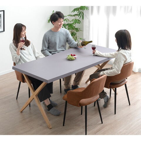 テーブル ・モダンでおしゃれなモルタル調天板 ・4人でゆったり使えるワイド天板 ・美しく交差するレッグデザイン ・脚は選べる2タイプ └温もり感じるナチュラル脚 └スタイリッシュなブラック脚 チェア 【レザータイプ】 ・しっとり滑らかソフトレザー ・使い込まれたような風合い エイジング加工 【ファブリックタイプ】 ・年中さらっと快適 ・お手入れ簡単な撥水加工 |