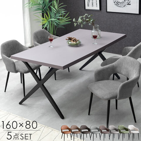 モルタル調 ダイニングテーブルセット 4人掛け 5点セット 長方形 テーブル クロス脚 ダイニングチェア 北欧 モダン【超大型】99900110〔テーブル:ブラック/チェア:レドグレー(ファブリック)〕