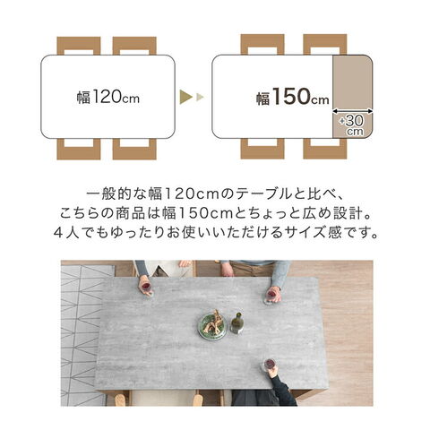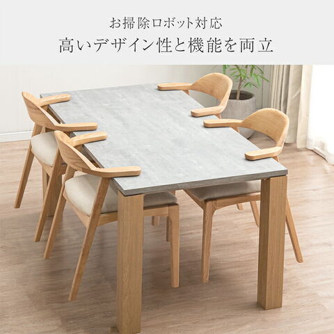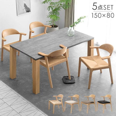 お掃除ロボット対応 ダイニングセット 幅150cm 石目調 モルタル調 ボールドレッグ 5点 4人掛け 長方形 ダイニングテーブル ワイド おしゃれ 【超大型】 99900115〔チェア:ペーパーコード座面〕