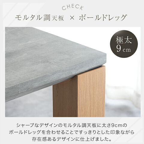 テーブル ・スタイリッシュなストーン調天板 ・ぬくもり感じる木目調角柱脚 ・天板は傷に強いメラミン素材 ・幕板なしで脚元広々 チェア ・木の温かみ感じる北欧モダンスタイルチェア ・高級感ある無垢材を贅沢に使用 ・くつろぎと利便性を兼ね備える ハーフアーム ・ハンギングOK お掃除ロボット対応 ・高い快適性/耐久性を実現した完成品 |