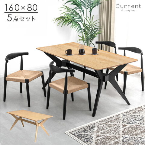 ダイニングテーブルセット 4人掛け 5点セット アッシュ 160cm テーブル 長方形 ダイニングセット テーブル チェア 木製 木目 北欧 おしゃれ 【超大型】 99900120〔ブラック(ペーパーコード座面)〕