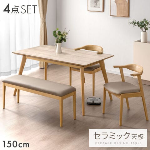 お掃除ロボット対応 セラミック ダイニングテーブルセット 4人掛け 4点 150cm ベンチ ダイニングテーブル セラミックテーブル ダイニング ダイニングセット チェア 4人 石目調 玄関渡し【超大型】99900144