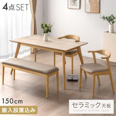 【テーブル搬入設置込み】 お掃除ロボット対応 セラミック ダイニングテーブルセット 4人掛け 4点 150cm ベンチ ダイニングテーブル セラミックテーブル ダイニング ダイニングセット チェア 4人 石目調【超大型】99900148