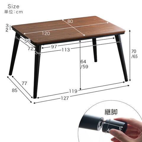 【こたつテーブル】 外寸:幅127×奥行85×高さ70/65cm 天板:120×80cm 【掛け布団】 外寸:120×80×75cm 生地寸:270×230cm 【チェア】 外寸:約幅38x奥行46.5x高さ80cm 座面高:約41cm |