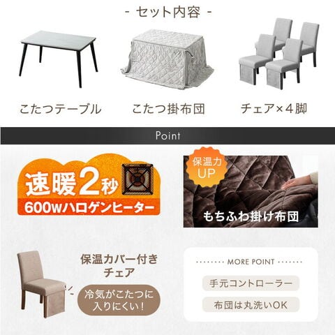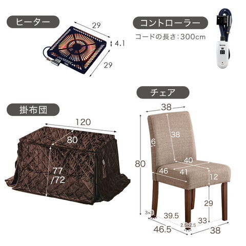 | 備考 | 【こたつテーブル/チェア:組立品】【掛け布団:洗濯OK】 |