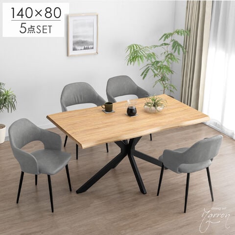 ダイニングセット 4人掛け 5点セット ダイニングテーブル チェア コンクリート調 石目調 大理石調 木目 木製 【超大型】99900264〔テーブル:ナチュラル/チェア:アッシュグレー(レザー)〕