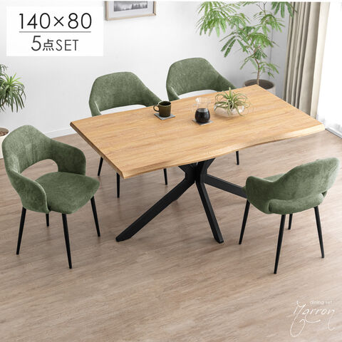 ダイニングセット 4人掛け 5点セット ダイニングテーブル チェア コンクリート調 石目調 大理石調 木目 木製 【超大型】99900264〔テーブル:ナチュラル/チェア:モスグリーン(ファブリック)〕【予約】2月中旬※2/20までに出荷予定