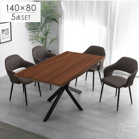ダイニングセット 4人掛け 5点セット ダイニングテーブル チェア コンクリート調 石目調 大理石調 木目 木製 【超大型】99900264〔テーブル:ブラウン/チェア:ブラウニーブラック(レザー)〕【予約】1月上旬※1/11までに出荷予定