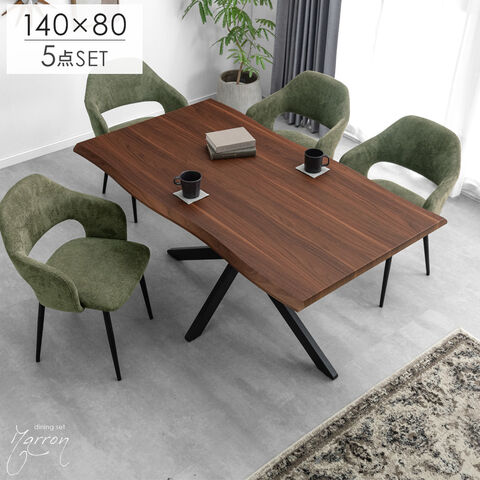 ダイニングセット 4人掛け 5点セット ダイニングテーブル チェア コンクリート調 石目調 大理石調 木目 木製 【超大型】99900264〔テーブル:ブラウン/チェア:モスグリーン(ファブリック)〕【予約】1月上旬※1/11までに出荷予定