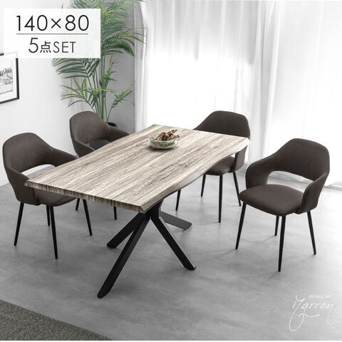 ダイニングセット 4人掛け 5点セット ダイニングテーブル チェア コンクリート調 石目調 大理石調 木目 木製 【超大型】99900264〔テーブル:グレー/チェア:ブラウニーブラック(レザー)〕