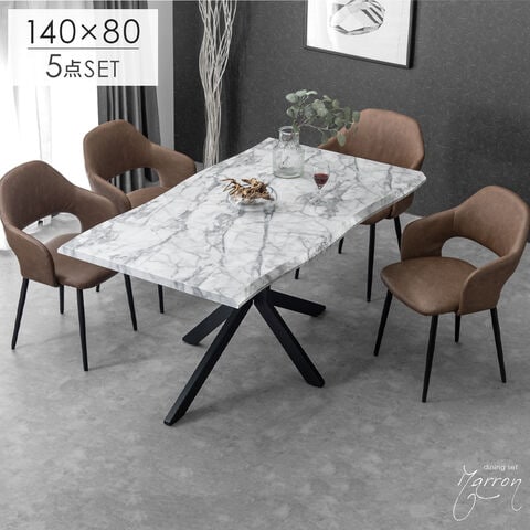 ダイニングセット 4人掛け 5点セット ダイニングテーブル チェア コンクリート調 石目調 大理石調 木目 木製 【超大型】99900264〔テーブル:マーブルホワイト/チェア:オールドブラウン(レザー)〕