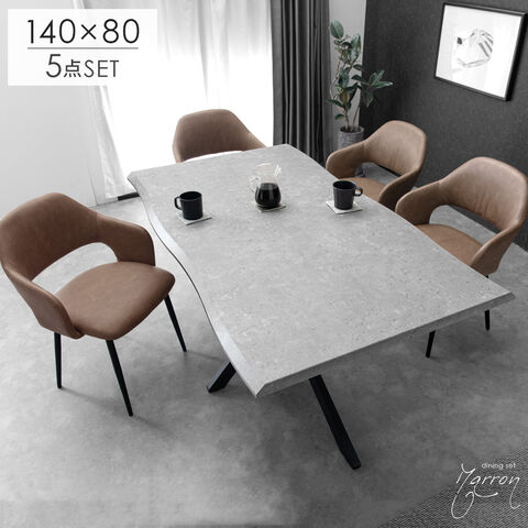 ダイニングセット 4人掛け 5点セット ダイニングテーブル チェア コンクリート調 石目調 大理石調 木目 木製 【超大型】99900264〔テーブル:ストーングレー/チェア:オールドブラウン(レザー)〕