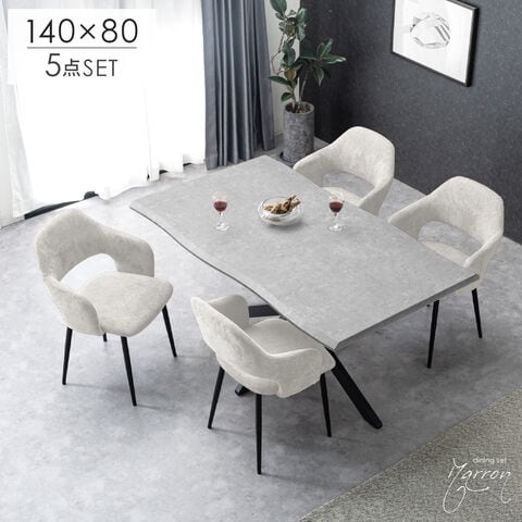 ダイニングセット 4人掛け 5点セット ダイニングテーブル チェア コンクリート調 石目調 大理石調 木目 木製 【超大型】99900264〔テーブル:ストーングレー/チェア:アイボリー(ファブリック)〕