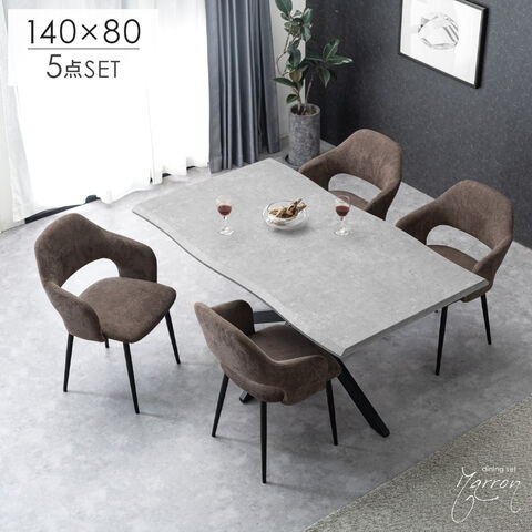 ダイニングセット 4人掛け 5点セット ダイニングテーブル チェア コンクリート調 石目調 大理石調 木目 木製 【超大型】99900264〔テーブル:ストーングレー/チェア:ショコラブラウン(ファブリック)〕