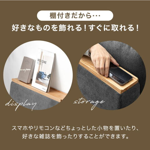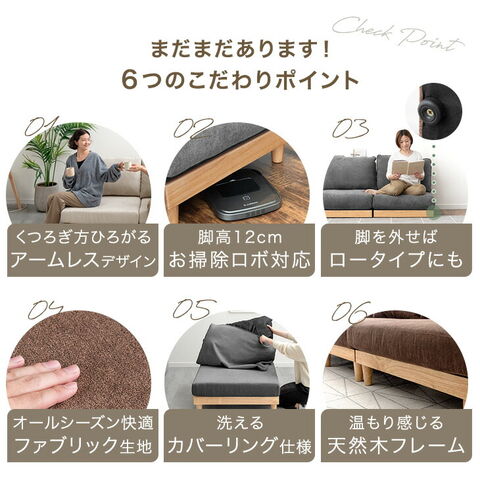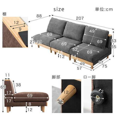 ・天然木棚付きユニットソファ ・カバーを洗って清潔キープ ・お掃除ロボ対応&脚を外せばロータイプにも ・シーンに合わせて組み換えOK ・温もり感じる天然木フレーム ・防虫効果のあるユーカリ材使用 ・オールシーズン快適 ファブリック ・家族が増えても連結して長く使える ・キズ防止フェルト付 |