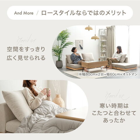 | サイズ | <脚取り付け時> 本体:幅80x奥行80x高さ56cm(クッション設置時:高さ76cm) 座面高:32cm <ロータイプ時> 本体:幅80x奥行80x高さ44cm(クッション設置時:高さ64cm) 座面高:20cm …………………… クッション:幅80×高さ34cm 脚部:直径4×高さ12cm |