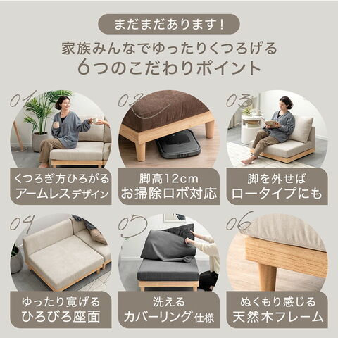 | 備考 | 【組立品】 ※配送は全て宅配便(1人)での玄関渡しとなります。大型商品や重量商品、エレベーターの無い2階以上にお住まいのお客様は、玄関口までの搬入をお手伝いをお願いしております事をご了承ください。 ※商品ページの色味は、出来る限り実物に近い色で画像を掲載しておりますが、お使いのブラウザー及びモニターや使用環境により、実際の色と多少の差異があります。予めご了承ください。 ※本ソファのカバーはご家庭でお洗濯可能です。製品についている洗濯表示には「ドライクリーニングのみ可」の記載がありますが、30℃を限度に弱~標準モードであればご自宅の洗濯機でお手入れできます。 ※こちらの商品は2025年1月29日に、カラー名を「ダークブラウン」から「モカブラウン」に変更しました。 |