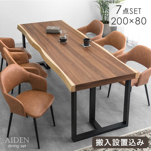 【テーブル搬入設置込】 ダイニングテーブルセット 6人掛け 7点 幅200cm 耳付き 長方形 ダイニングセット ダイニング ダイニングテーブル チェア おしゃれ 【超大型】 99900418〔レトロキャメル〕