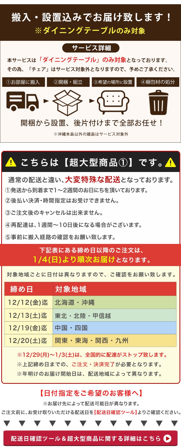 こちらは(搬入設置込み:テーブルのみ)の販売ページです