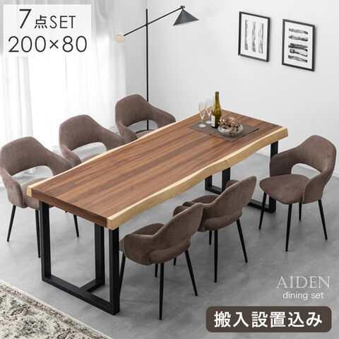 【テーブル搬入設置込】 ダイニングテーブルセット 6人掛け 7点 幅200cm 耳付き 長方形 ダイニングセット ダイニング ダイニングテーブル チェア おしゃれ 【超大型】 99900418〔ショコラブラウン〕