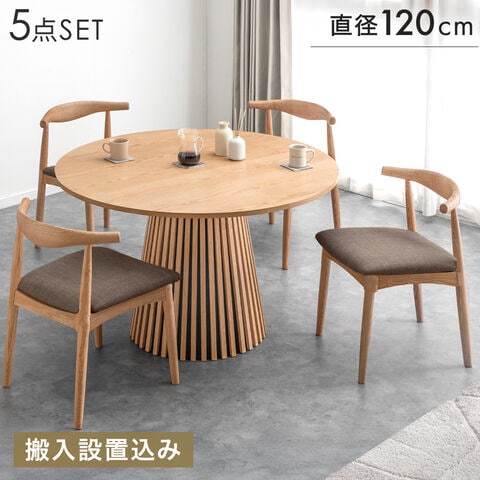 【テーブル搬入設置込】円形 ダイニングテーブルセット 5点セット 4人掛け 幅120 天然木 チェア 北欧 おしゃれ 【超大型】99900604 〔ナチュラル×ナチュラル(布座面:グレージュ)〕【予約】12月下旬/入荷後2~4週間でお届け