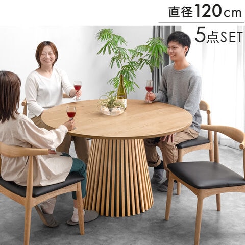 円形 ダイニングテーブルセット 5点セット 4人掛け 幅120 天然木 チェア 北欧 おしゃれ 玄関渡し【超大型】99901128〔ナチュラル×ナチュラル(PVC:座面ブラック)〕【予約】12月中旬/入荷後1~4週間でお届け