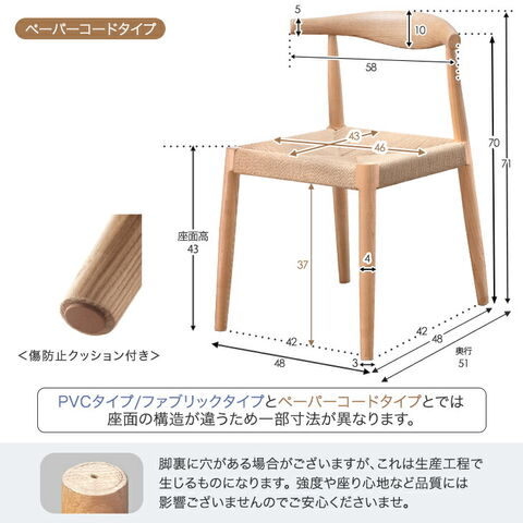 | 【テーブル】 天板:天然木アッシュ突板(ウレタン塗装) 脚:天然木ラバーウッド(ラッカー塗装) 【チェア】 【PVC座面タイプ】 フレーム:アッシュ無垢材(ラッカー塗装) 張地:PVCレザー 中材:ウレタン(30D) 【布座面タイプ】 フレーム:アッシュ無垢材(ラッカー塗装) 張地:ファブリック(ポリエステル100% 撥水加工済) 中材:ウレタン(30D) 【ペーパーコード座面タイプ】 フレーム:アッシュ無垢材(ラッカー塗装) 張地:ペーパーコード |