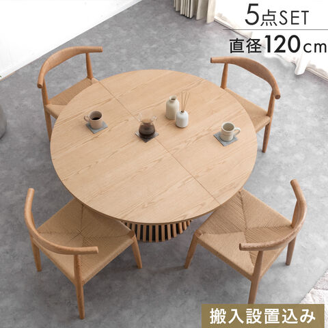 円形 ダイニングテーブルセット 5点セット 4人掛け 幅120 天然木 チェア 北欧 おしゃれ 玄関渡し【超大型】99901128〔ブラウン×ブラウン(座面ペーパーコード)〕【予約】1月中旬※1/20までに出荷予定