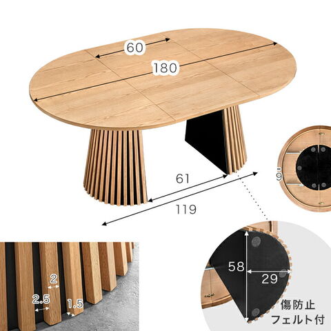 | サイズ | 【テーブル】 外寸:幅120/180×奥行120×高さ72cm 【チェア】 外寸:約幅58×奥行51×高さ71cm 座面高約43cm(1脚当たり) |