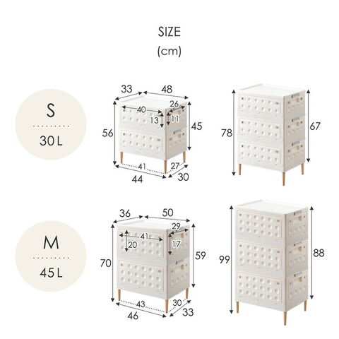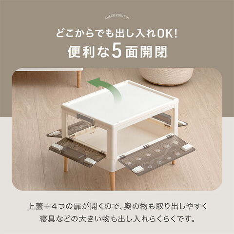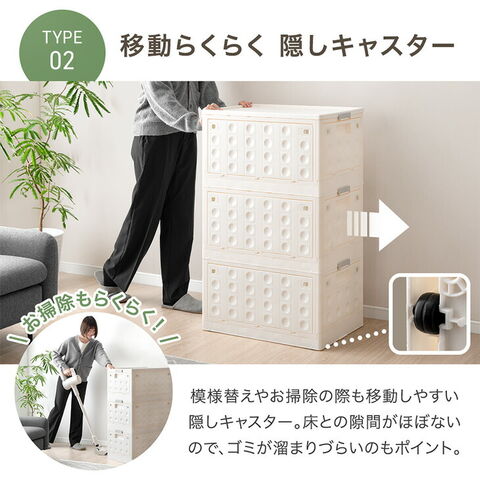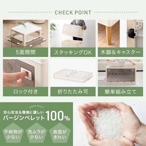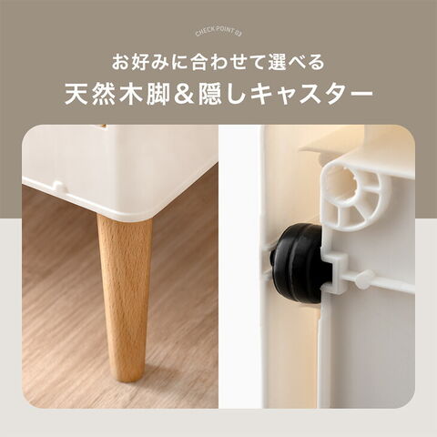 ・5面どこからでも出し入れOK! ・重ねて使えるスタッキング仕様 ・使わない時はコンパクトに折りたためる ・脚部はお好みに合わせて付け替え可 …お掃除ロボ対応 天然木脚 …移動らくらく隠しキャスター ・高品質&環境にやさしいバージンペレット100% ・安心のノンホルムアルデヒド |