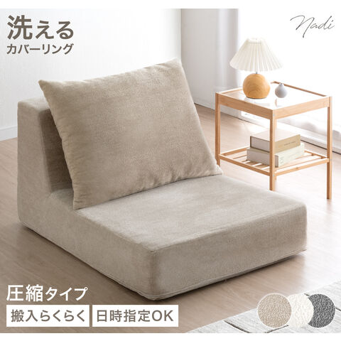 【即納】 洗える カバーリング フロアソファ 1人掛け ローソファ 圧縮 フロアソファー ユニットソファ フラットソファ リビングソファ パーソナルソファ 座椅子 おしゃれ 9180000106〔エクルベージュ〕
