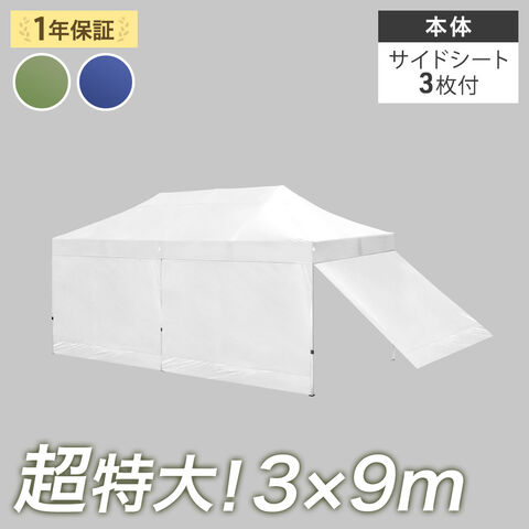 超特大 3×9m ワンタッチ タープテント サイドシート 3枚 収納ケース ワンタッチテント サイドシート付き 日よけ 遮熱 耐水 頑丈 運動会 イベント【超大型】99900945〔オフホワイト〕