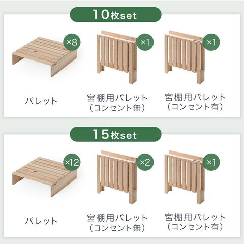 【即納】 宮付き ひのき パレットベッド お掃除ロボ対応 コンセント付 天然木 シングル セミダブル ダブル キング ファミリーベッド すのこベッド 檜 ローベッド ベッドフレーム 99901048〔15枚〕