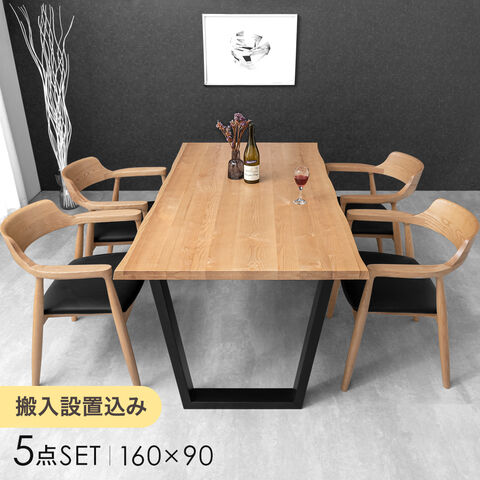 【搬入設置込】 天然木 ダイニングテーブルセット 4人掛け 5点セット 160cm テーブル 長方形 ダイニングセット ダイニングテーブル ダイニングチェア チェア 4人 木製 アッシュ 北欧 99901141 〔ナチュラル(PVC座面:ブラック)〕のレビュー