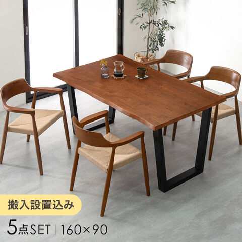 【搬入設置込】 天然木 ダイニングテーブルセット 4人掛け 5点セット 160cm テーブル 長方形 ダイニングセット ダイニングテーブル ダイニングチェア チェア 4人 木製 アッシュ 北欧 99901141 〔ブラウン(座面:ペーパーコード)〕【予約】4月下旬※4/30までに出荷予定