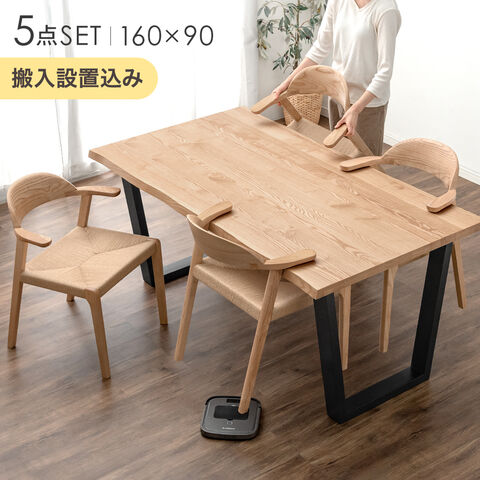 【搬入設置込み】お掃除ロボット対応 ダイニングテーブルセット 4人掛け 天然木 5点セット 160cm テーブル 長方形 ダイニングセット ダイニングテーブル ダイニングチェア 99901144〔ナチュラル【チェア:ナチュラル(座面ペーパーコード)】〕