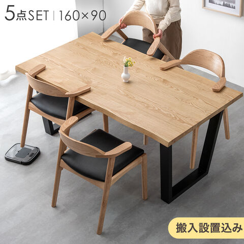 【搬入設置込み】お掃除ロボット対応 ダイニングテーブルセット 4人掛け 天然木 5点セット 160cm テーブル 長方形 ダイニングセット ダイニングテーブル ダイニングチェア 99901144〔ナチュラル【チェア:ナチュラル(PVC座面ブラック)】〕