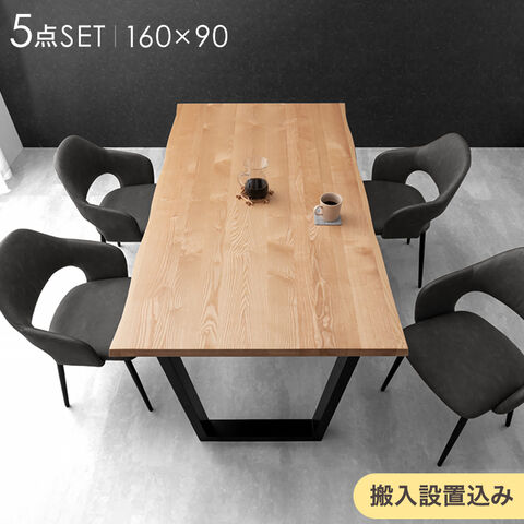 【搬入設置込み(テーブルのみ)】ダイニングテーブルセット 4人掛け 5点セット 160cm テーブル 長方形 ダイニングセット ダイニングテーブル ダイニングチェア 【超大型】 99901145〔【テーブル】ナチュラル/【チェア】ブラウニーブラック〕
