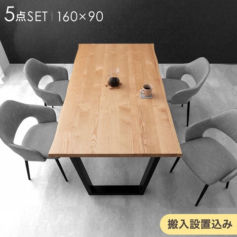 【搬入設置込み(テーブルのみ)】ダイニングテーブルセット 4人掛け 5点セット 160cm テーブル 長方形 ダイニングセット ダイニングテーブル ダイニングチェア 【超大型】 99901145〔【テーブル】ナチュラル/【チェア】アッシュグレー〕